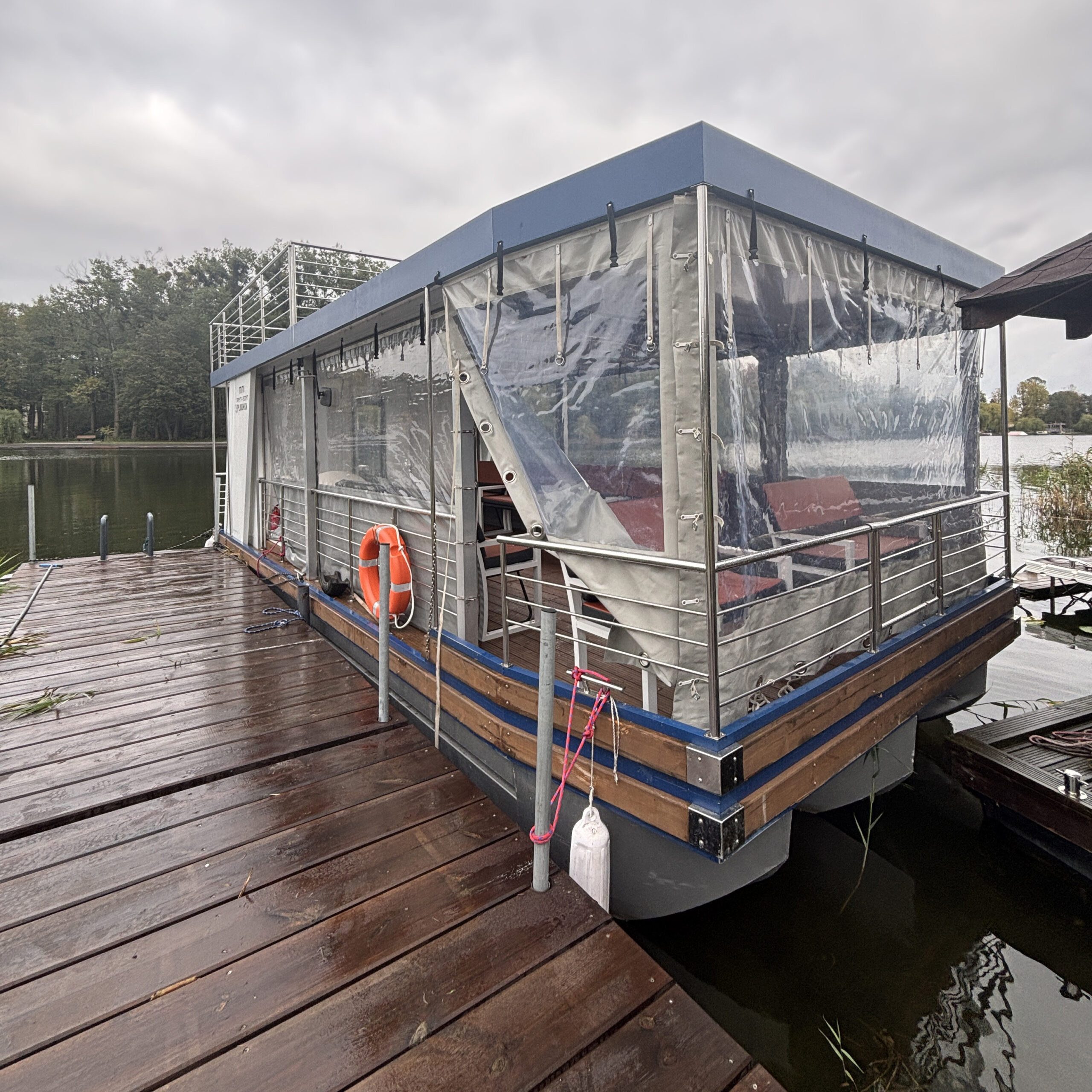 Statek o wymiarach 10 × 3,5 metra oferuje komfortową przestrzeń idealną do organizacji imprezy. W środku dużo miejsca do tańczenia.